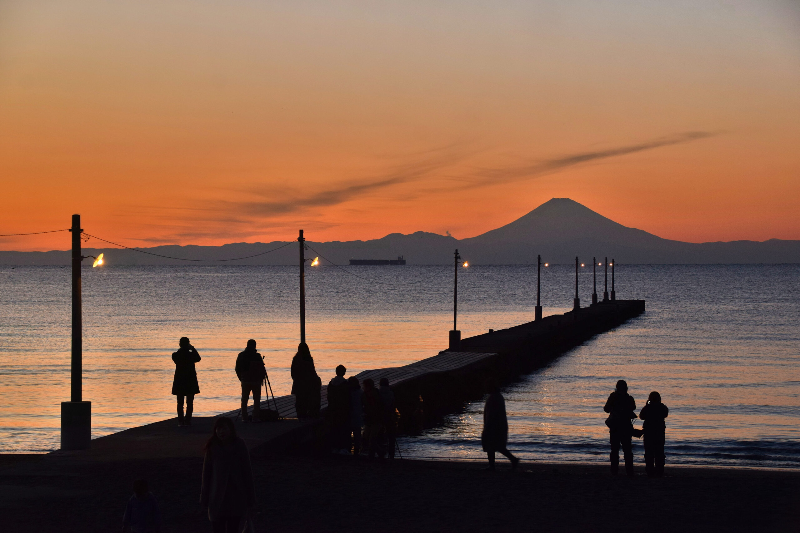 全国でも数少ない木製の桟橋で、1921年(大正10年)に漁業用として整備された歴史があります。ノスタルジックな佇まいが魅力的で、条件が合えば海の向こうに富士山が見えることもあります。美しい夕焼けと富士山のシルエットが織りなすフォトジェニックな絶景を求めて多くの人が足を運びます。