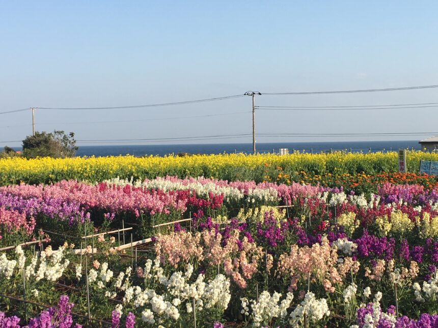 1.白間津、千田の花畑 温暖な気候の南房総の花の時期は1月~3月にかけてです。ストック、ポピー、キンセンカなどが咲き揃い、雄大な太平洋の潮風を感じながら花摘みが楽しめます。