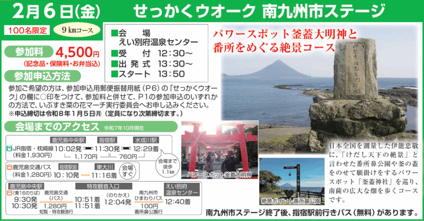 いぶすき菜の花マーチの前日に開催されるスペシャルウォークです